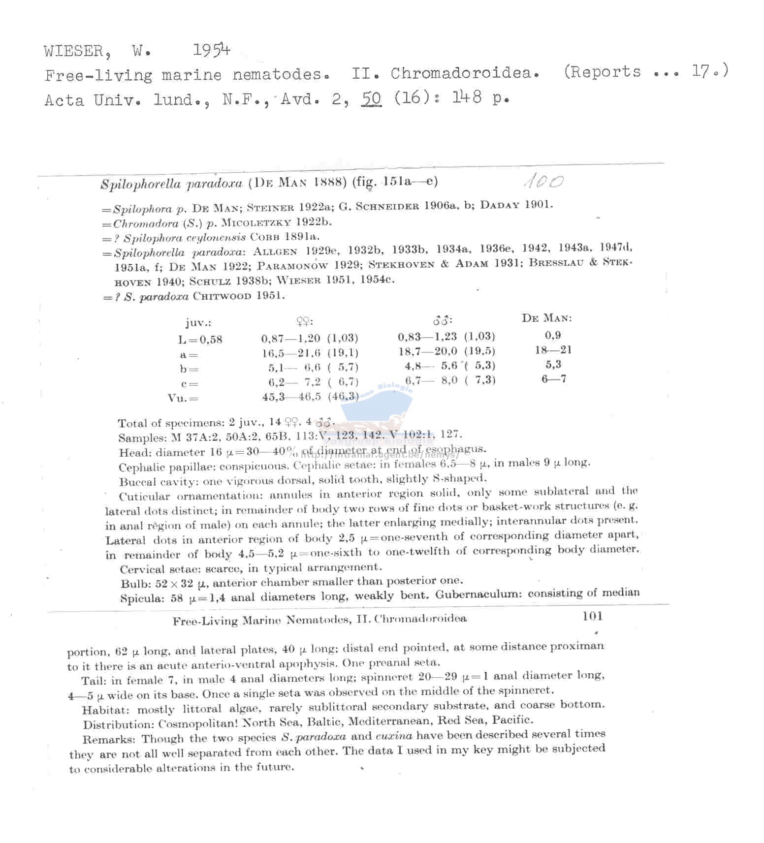 Nematode file-library of the Marine Biology Section (Ghent University, Belgium)