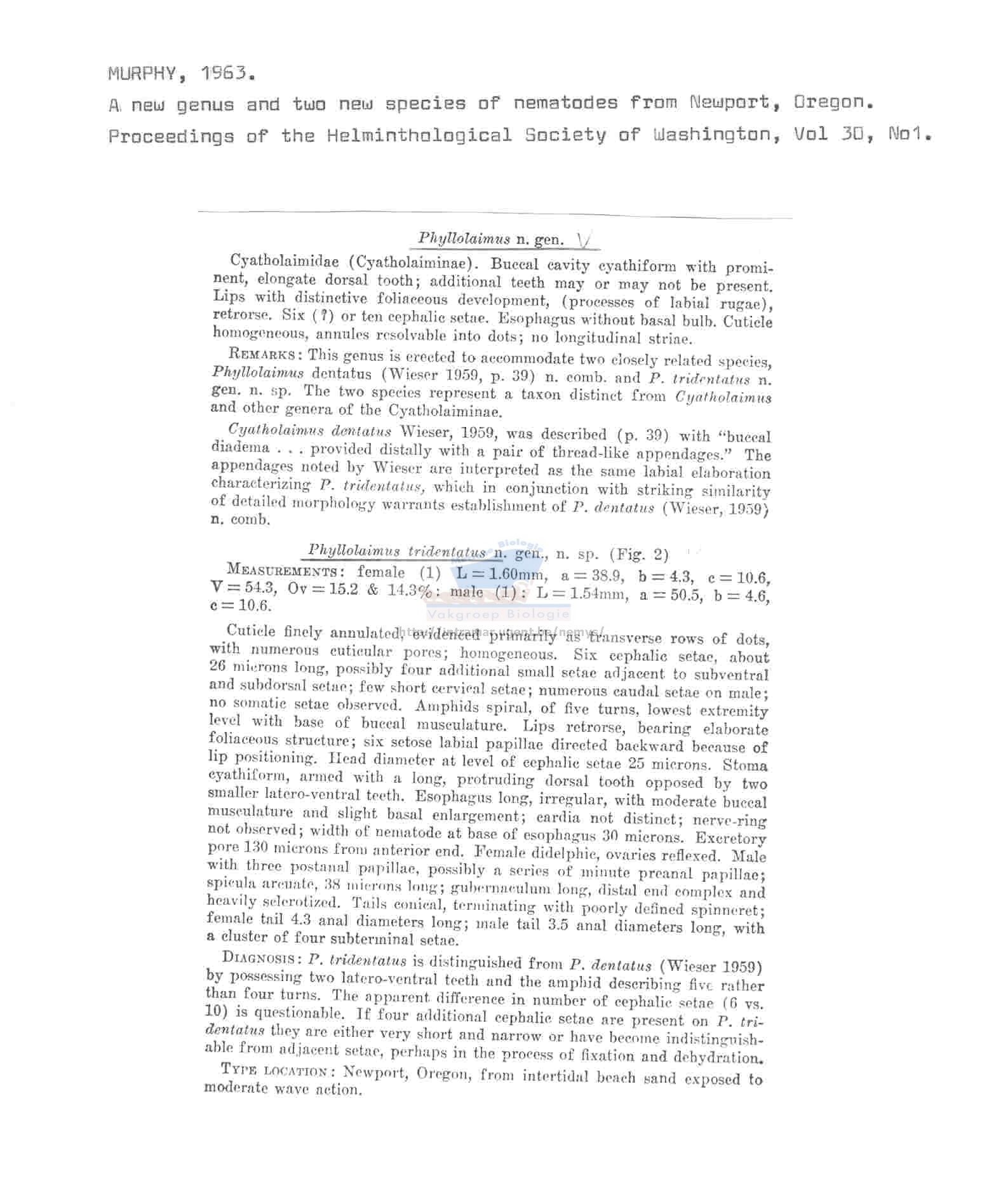 Phyllolaimus tridentatus