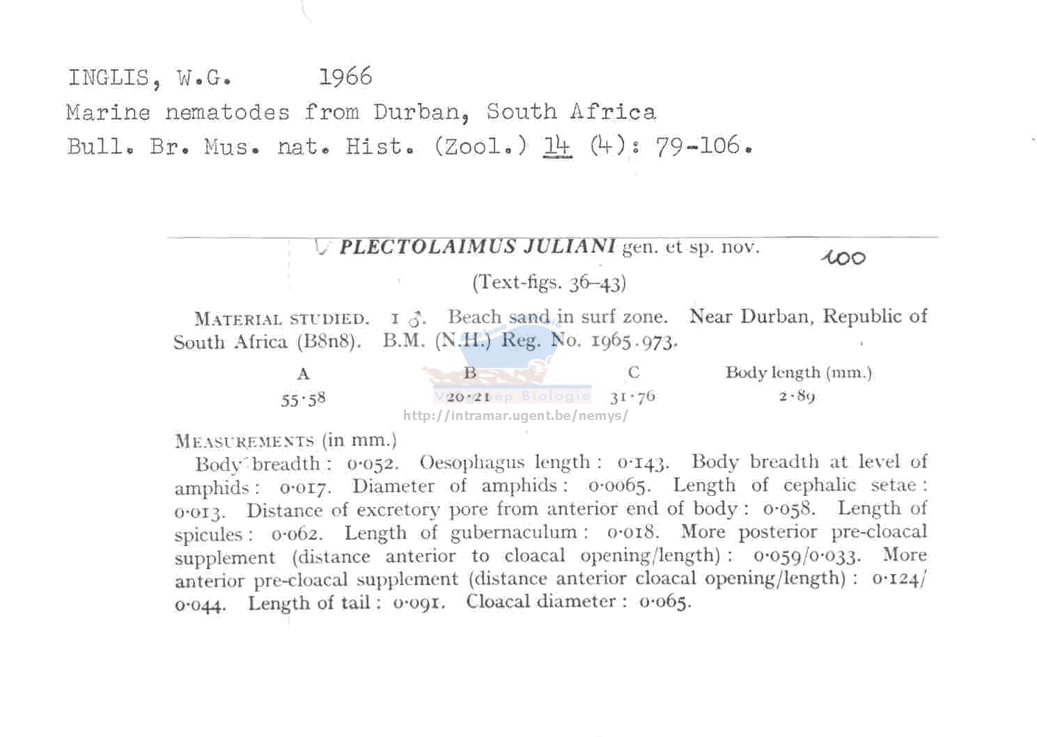 Nematode file-library of the Marine Biology Section (Ghent University, Belgium)