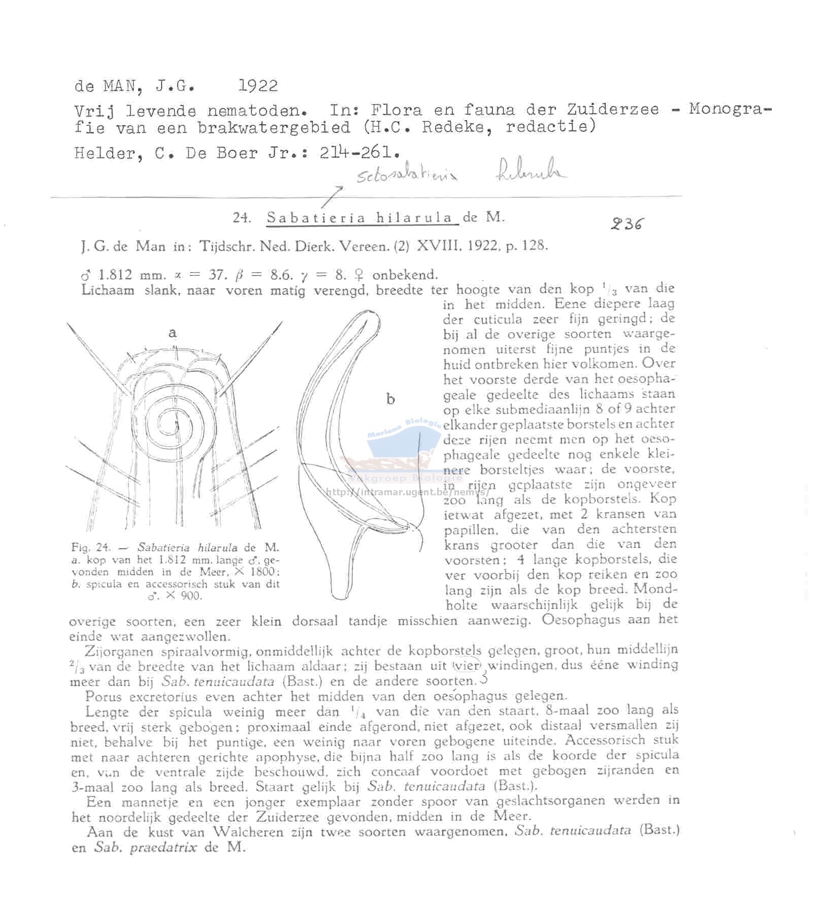 Nematode file-library of the Marine Biology Section (Ghent University, Belgium)
