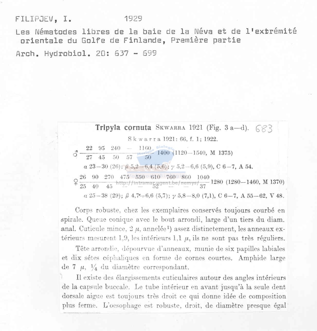 Nematode file-library of the Marine Biology Section (Ghent University, Belgium)