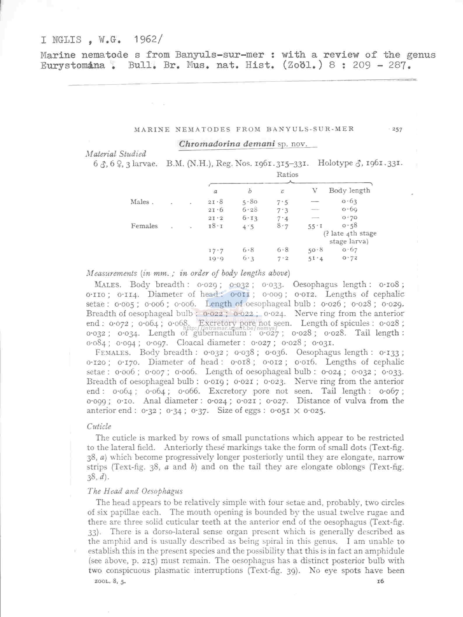 Nematode file-library of the Marine Biology Section (Ghent University, Belgium)