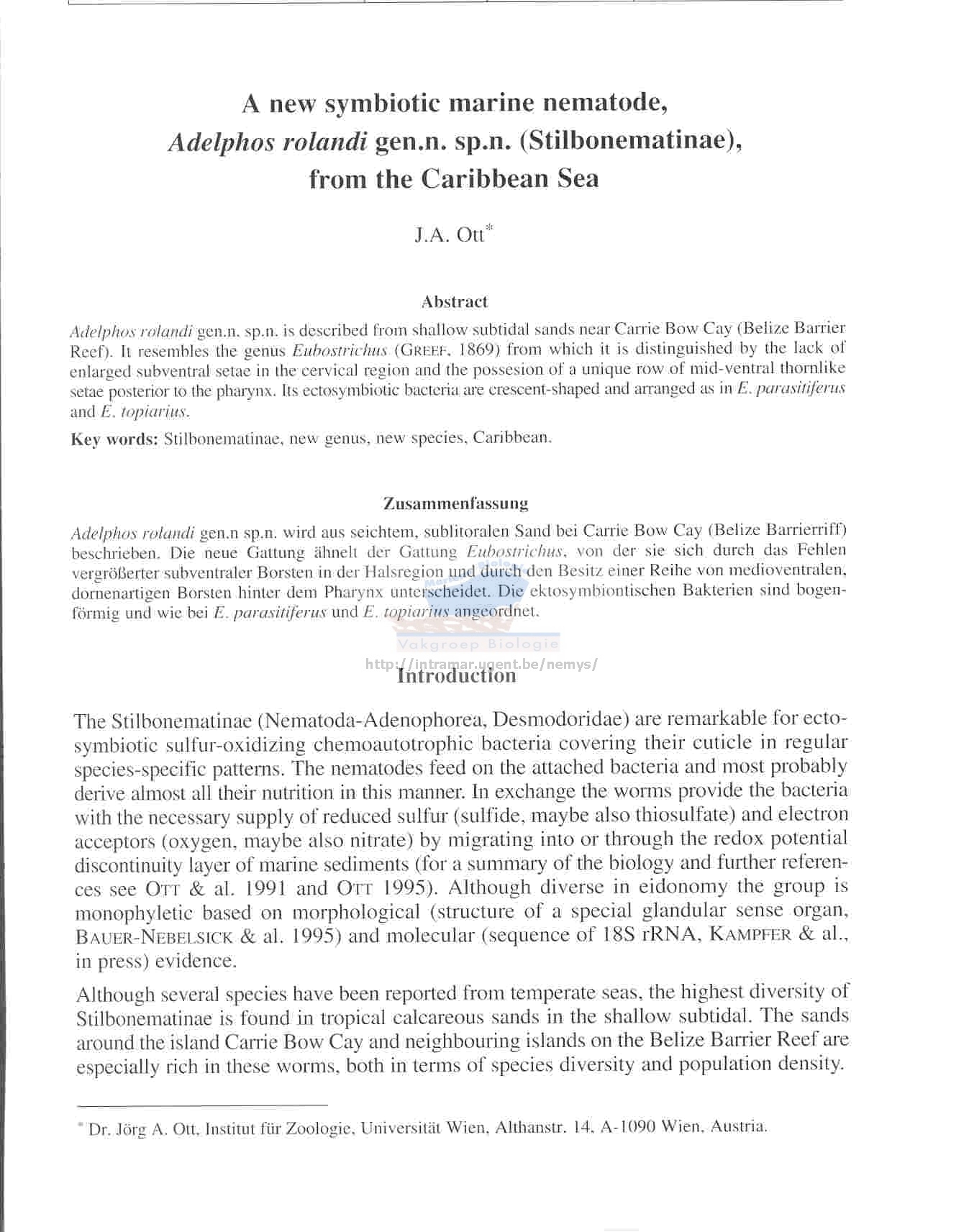 Linked to the Marine Biology Section, UGent