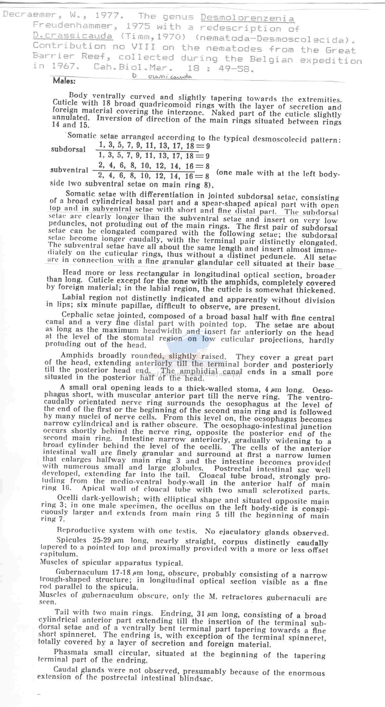 Desmoscolex (Desmolorenzenia) crassicaudus