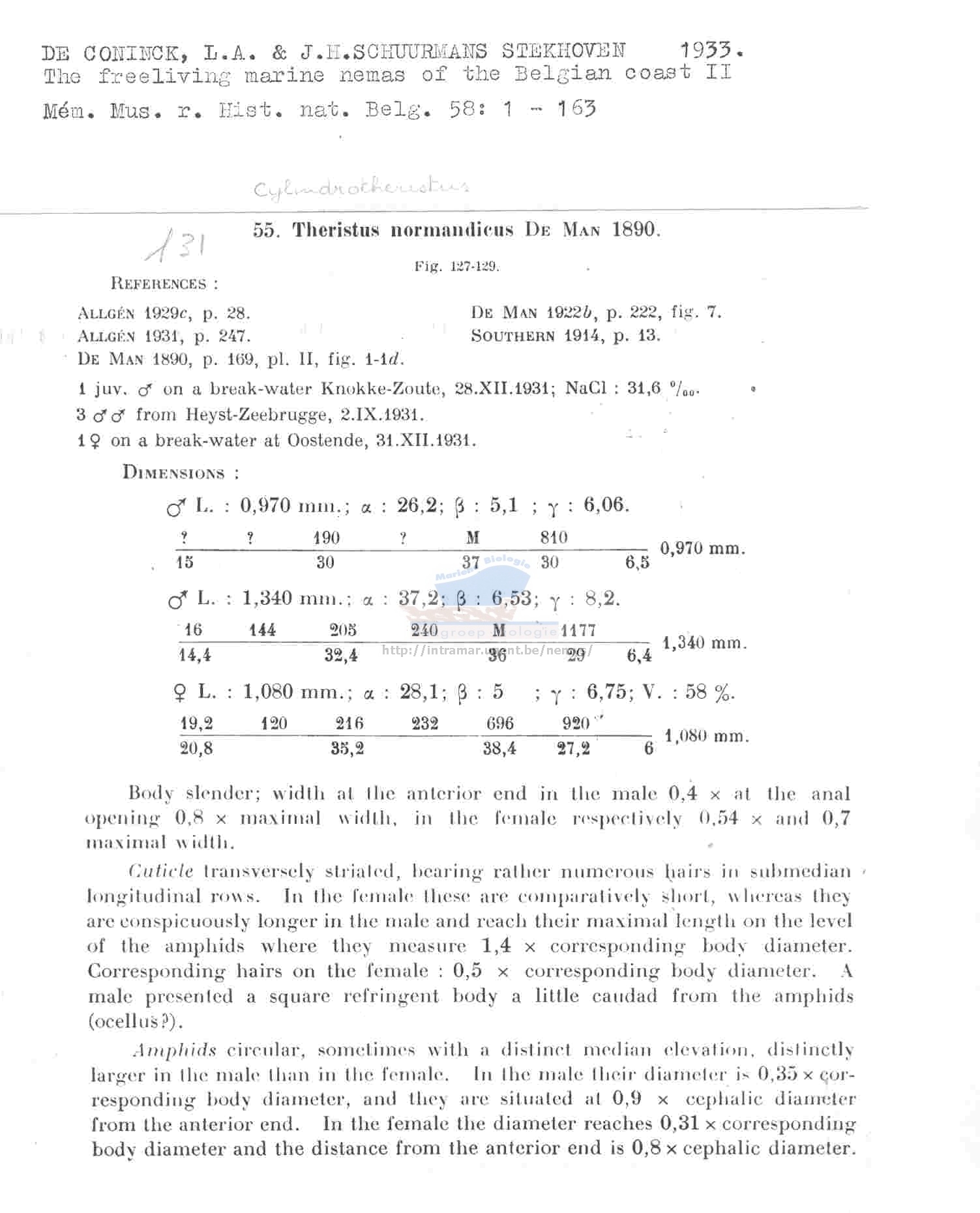 Nematode file-library of the Marine Biology Section (Ghent University, Belgium)