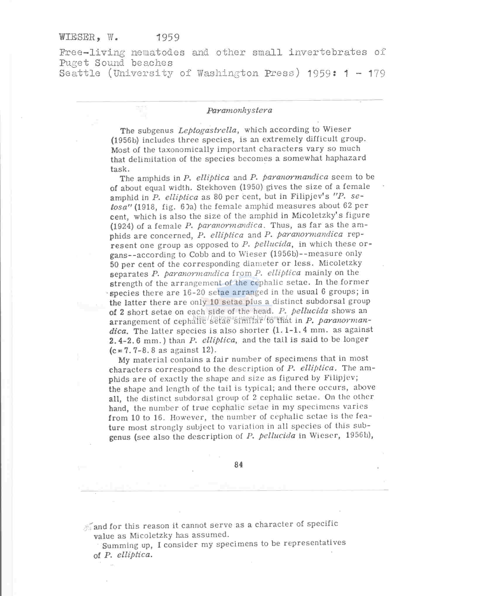 Nematode file-library of the Marine Biology Section (Ghent University, Belgium)