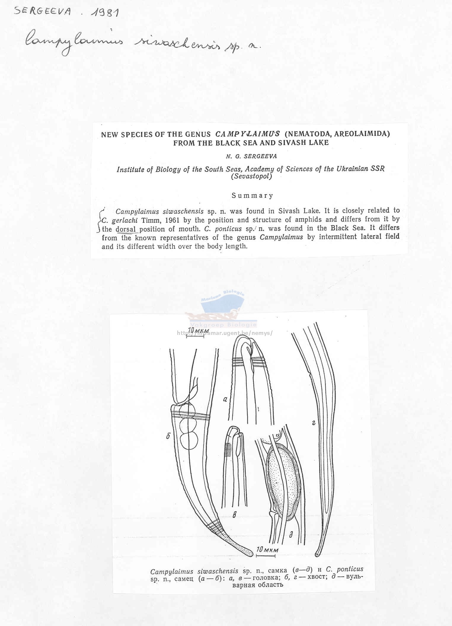 Nematode file-library of the Marine Biology Section (Ghent University, Belgium)