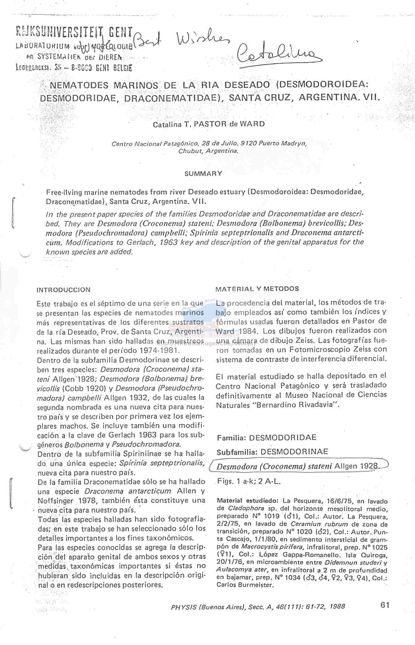 Nematode file-library of the Marine Biology Section (Ghent University, Belgium)