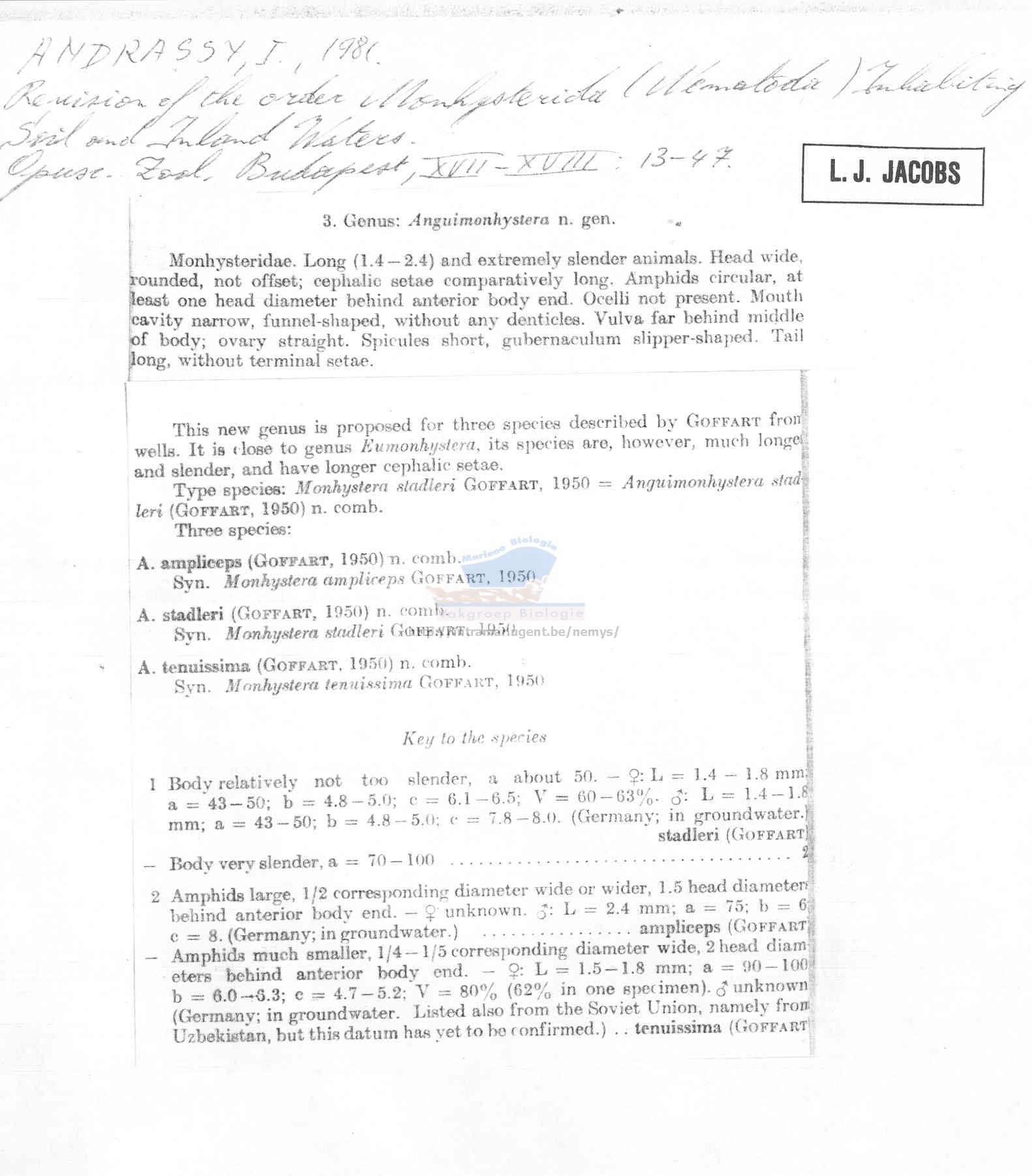 Nematode file-library of the Marine Biology Section (Ghent University, Belgium)