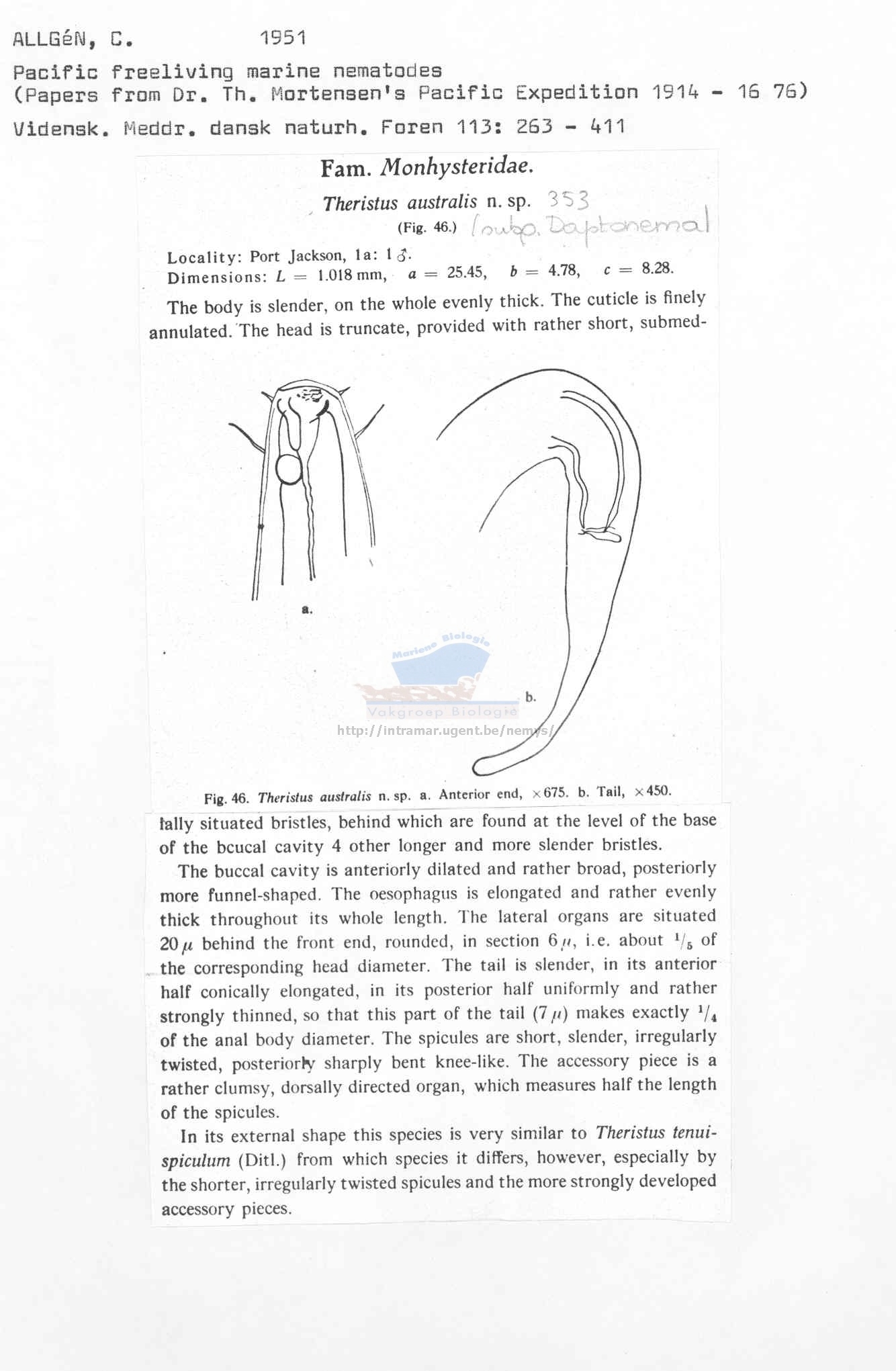 Nematode file-library of the Marine Biology Section (Ghent University, Belgium)
