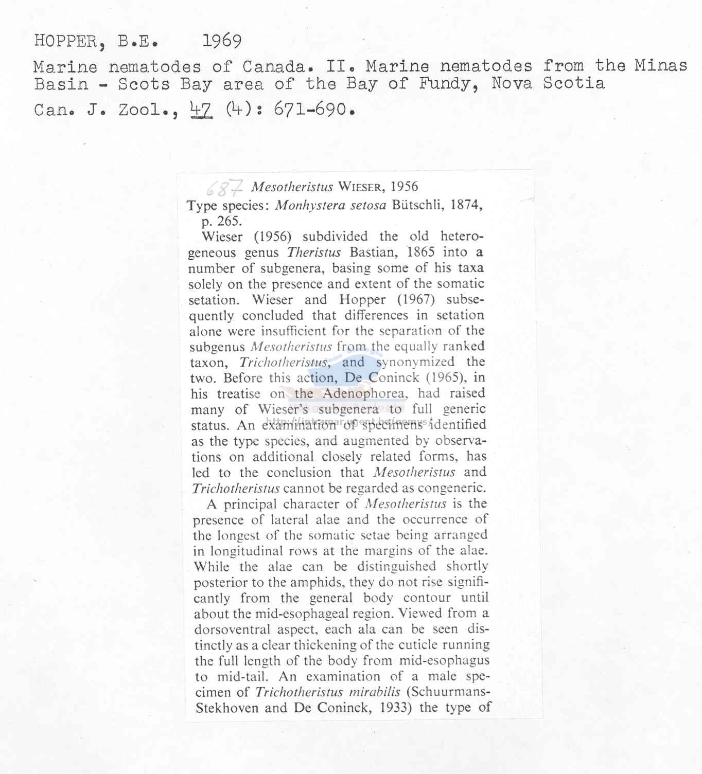 Nematode file-library of the Marine Biology Section (Ghent University, Belgium)