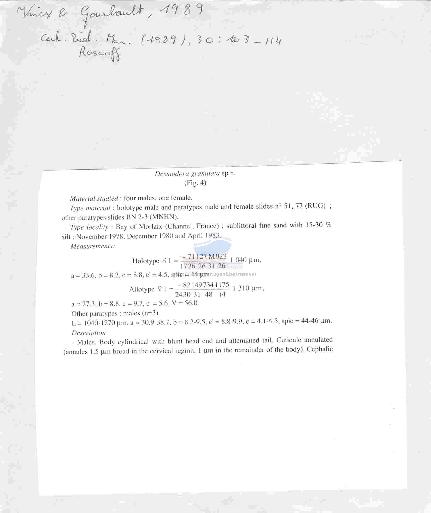 Nematode file-library of the Marine Biology Section (Ghent University, Belgium)