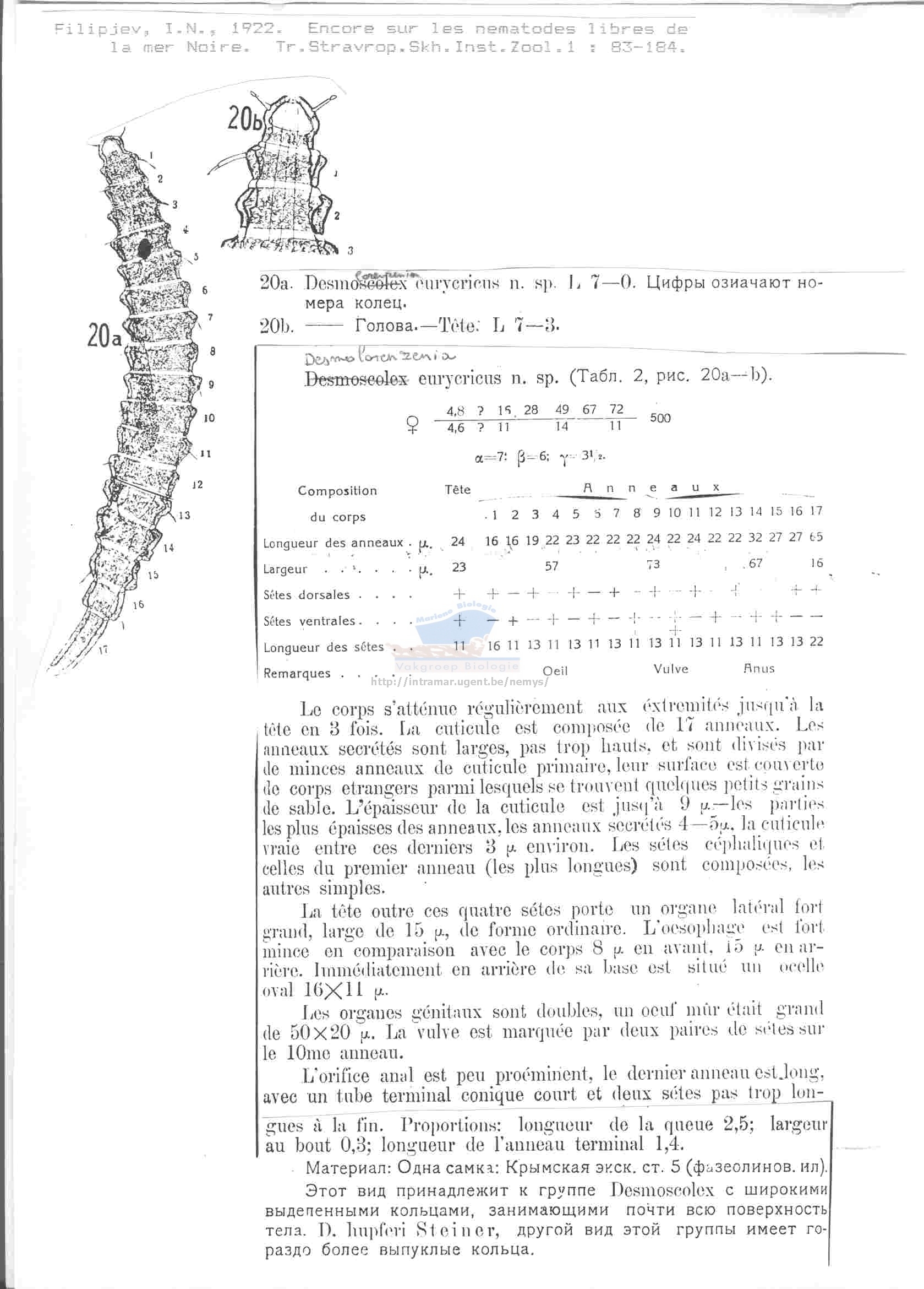 Desmoscolex (Desmolorenzenia) eurycricus