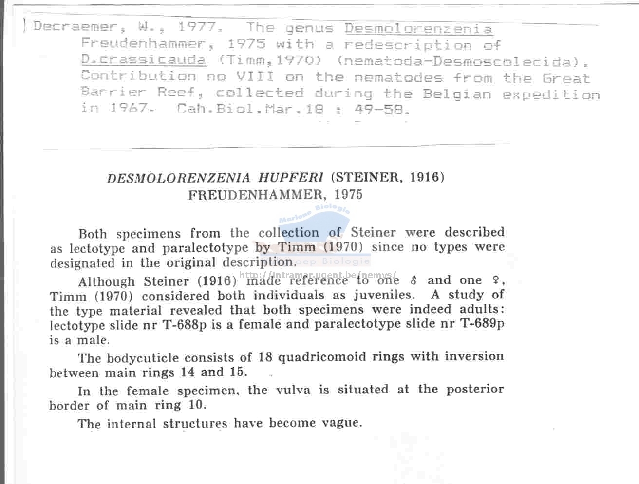 Nematode file-library of the Marine Biology Section (Ghent University, Belgium)
