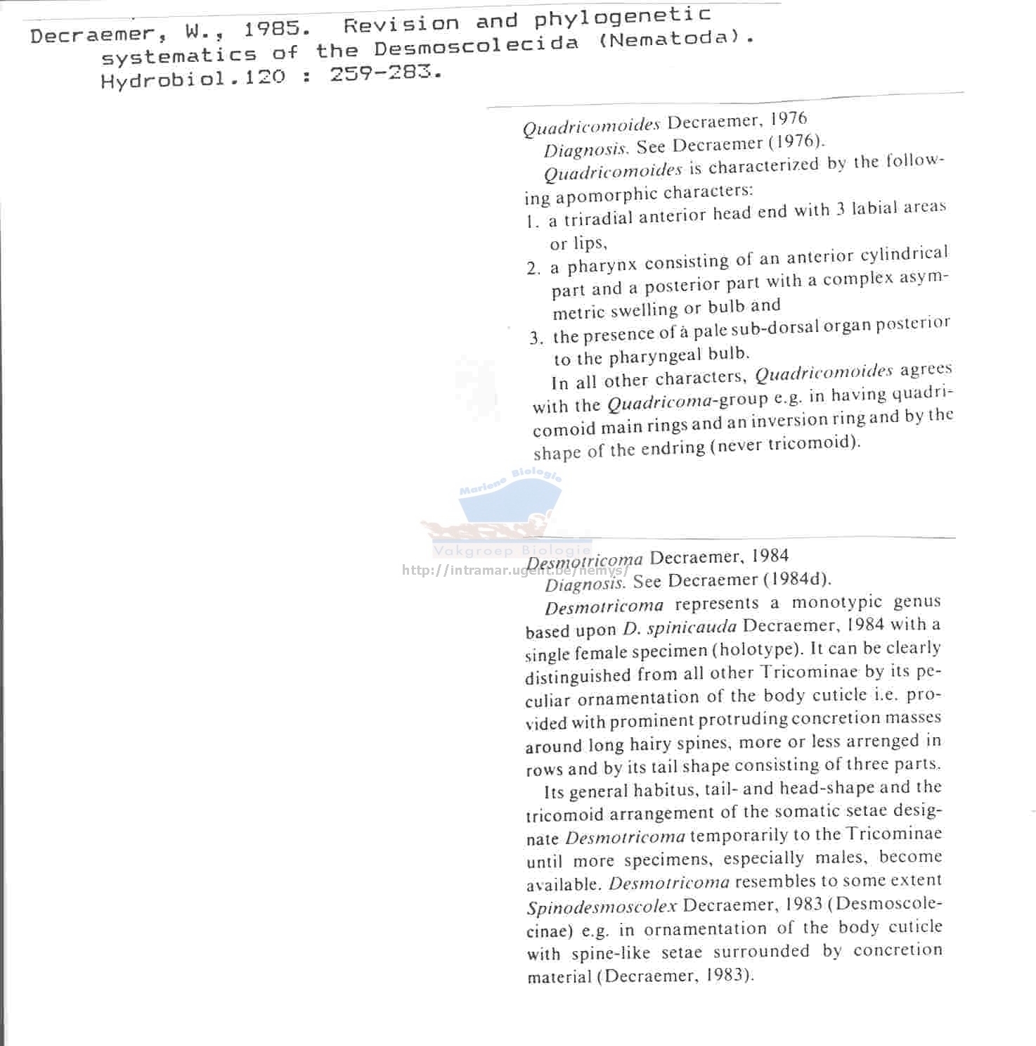 Nematode file-library of the Marine Biology Section (Ghent University, Belgium)