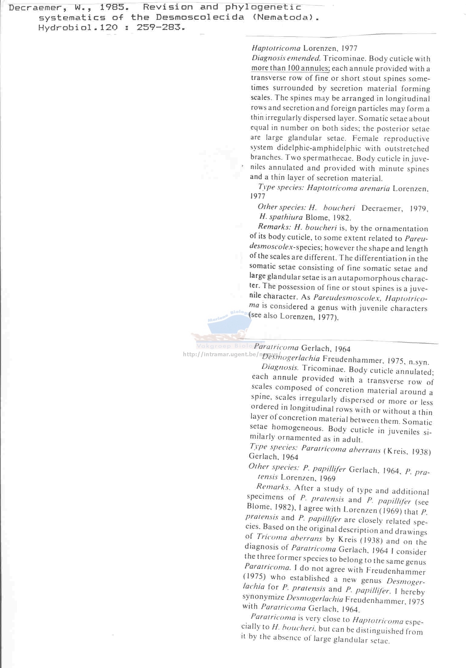 Nematode file-library of the Marine Biology Section (Ghent University, Belgium)