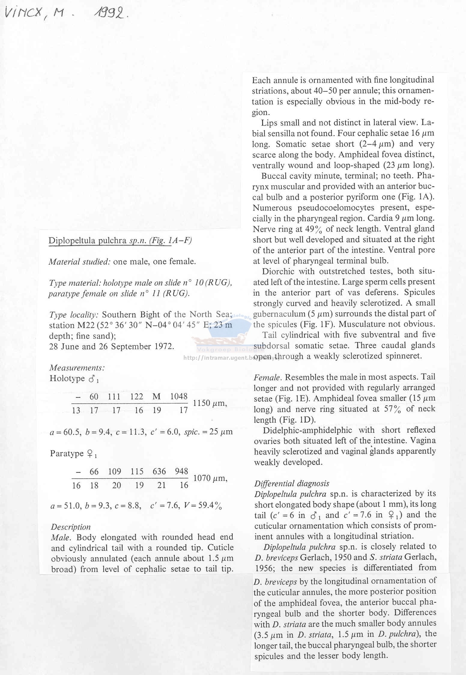 Vincx & Gourbault, 1992