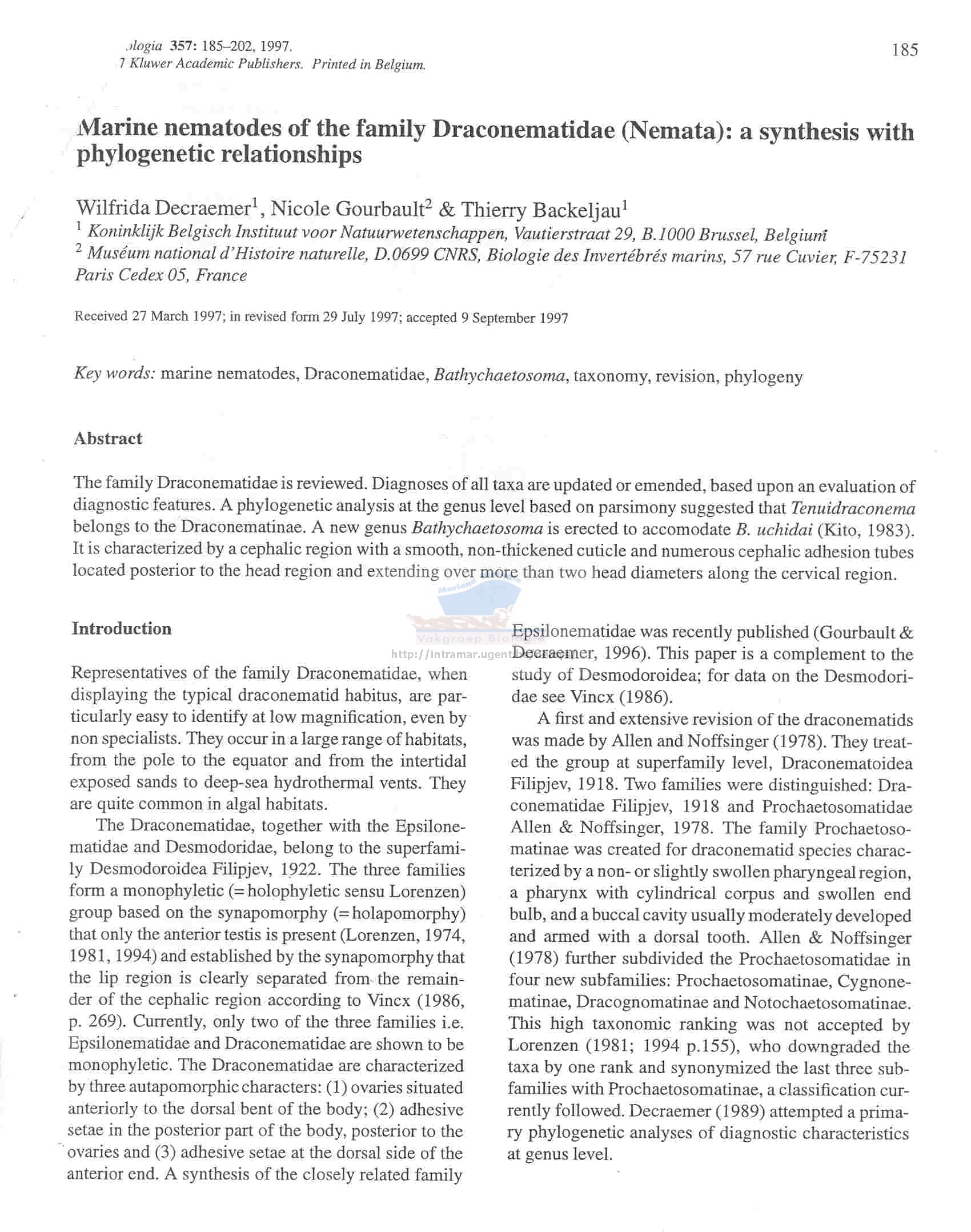 Nematode file-library of the Marine Biology Section (Ghent University, Belgium)