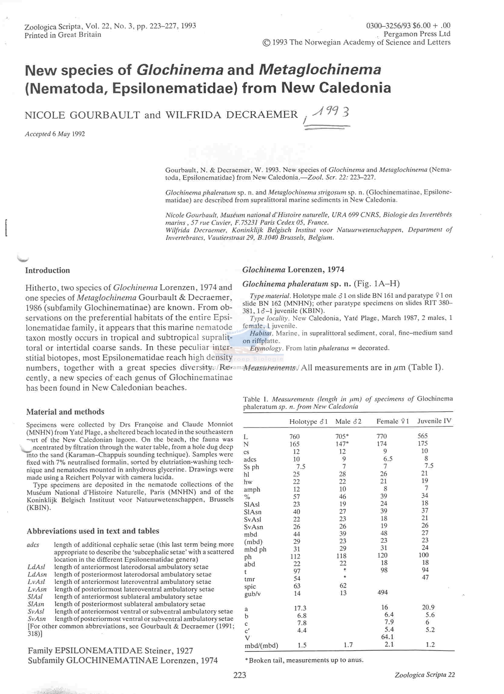 Gourbault & Decraemer, 1993