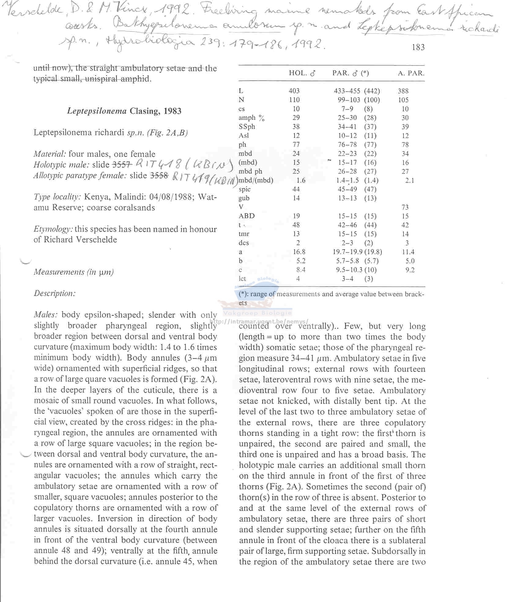 Verschelde & Vincx, 1992