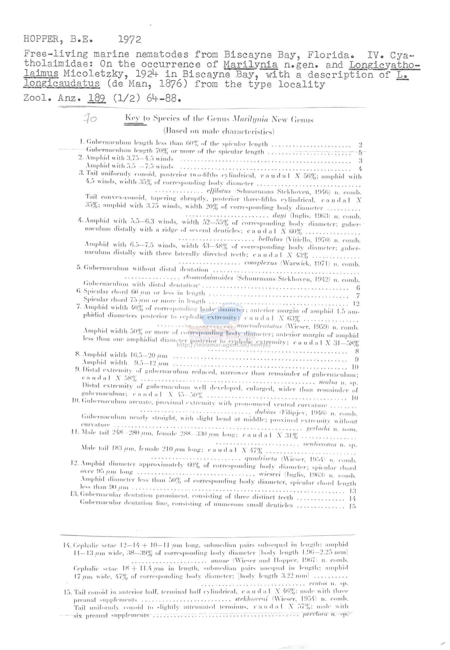 Nematode file-library of the Marine Biology Section (Ghent University, Belgium)