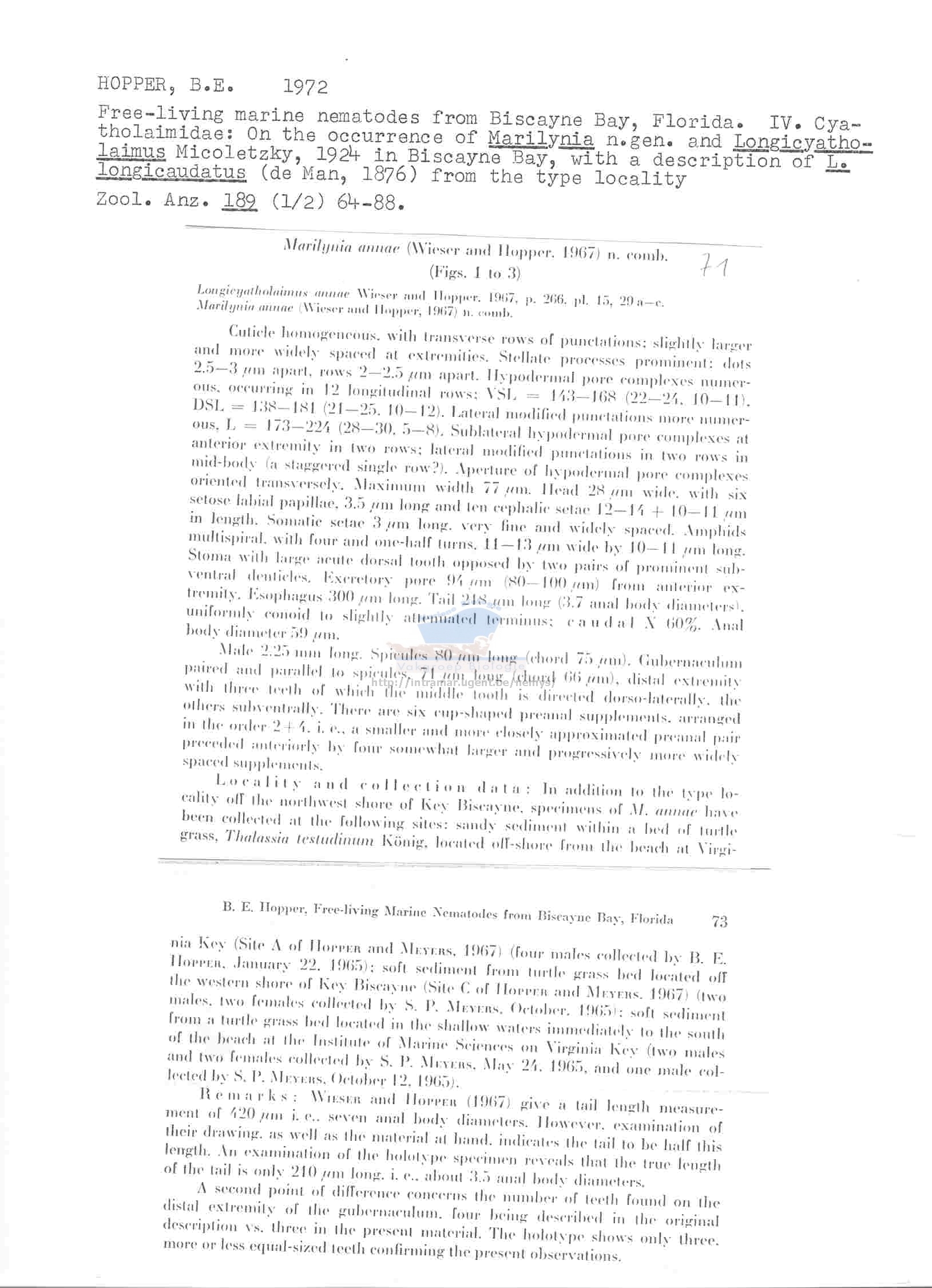 Nematode file-library of the Marine Biology Section (Ghent University, Belgium)