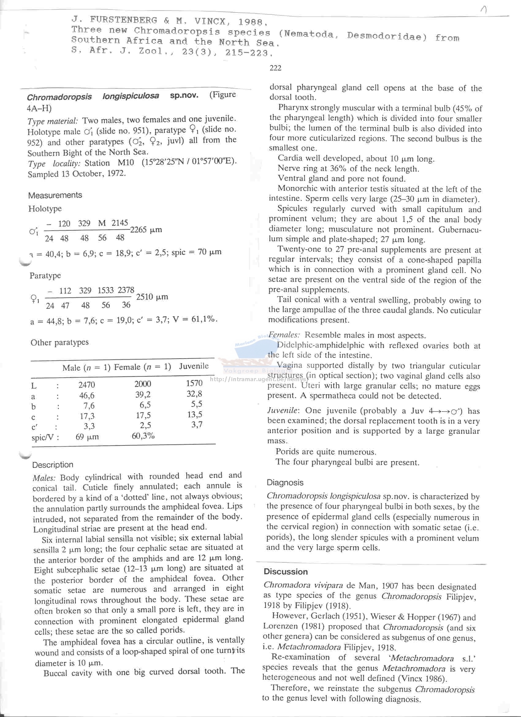 Nematode file-library of the Marine Biology Section (Ghent University, Belgium)