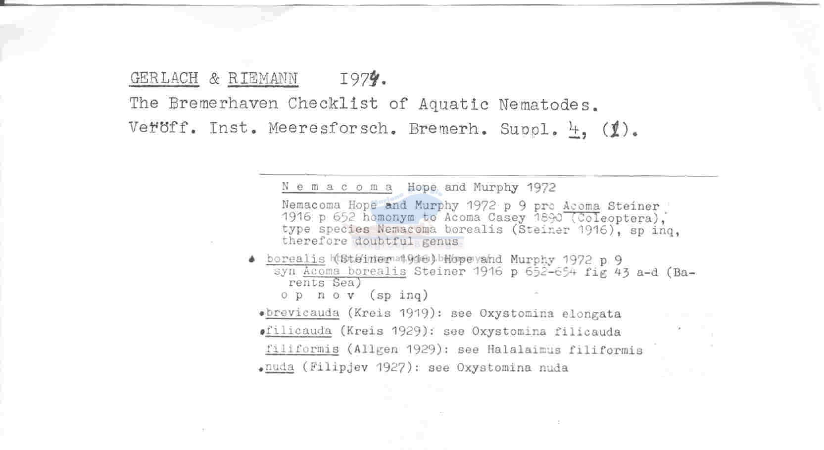 World Database of Nematodes