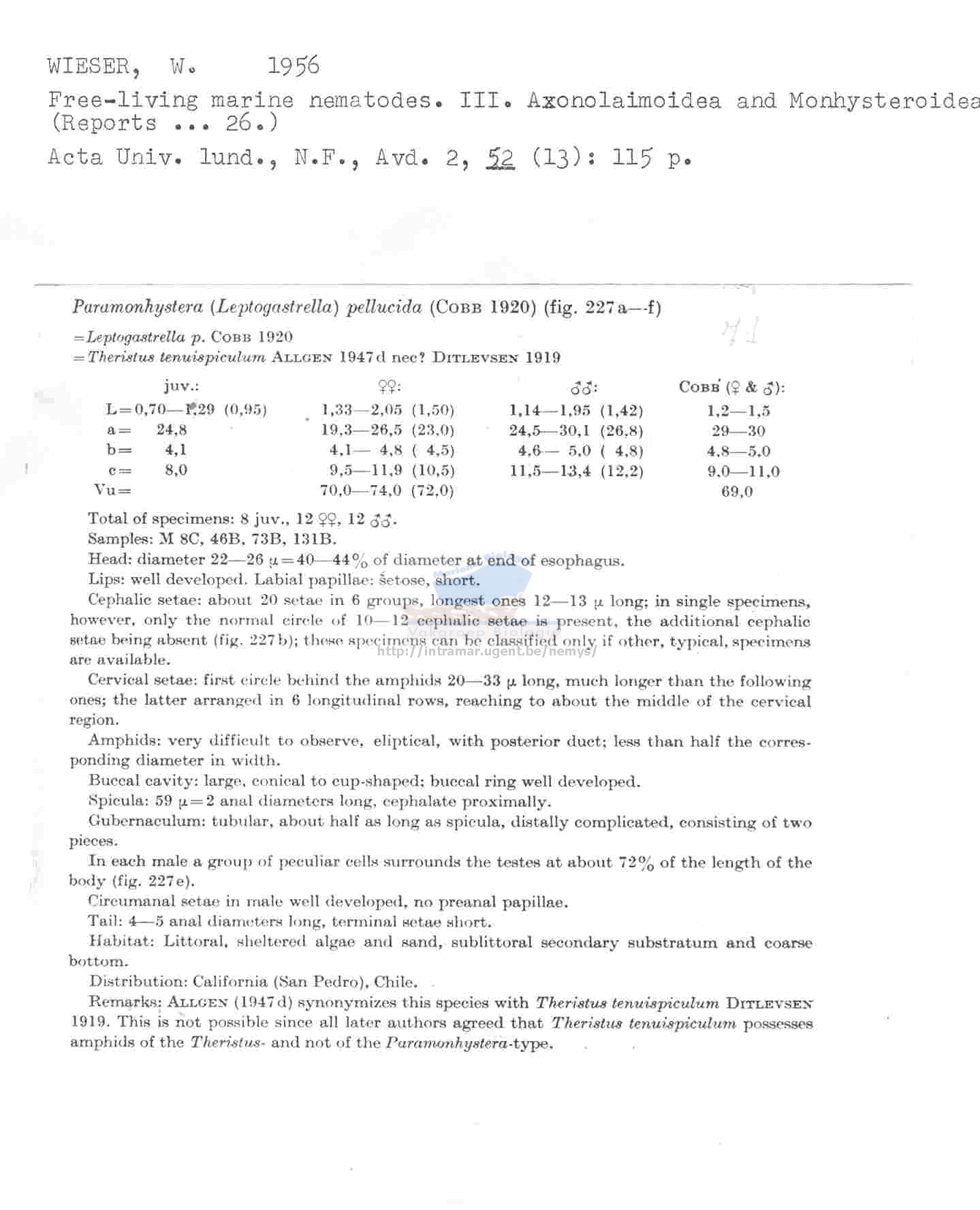 Nematode file-library of the Marine Biology Section (Ghent University, Belgium)