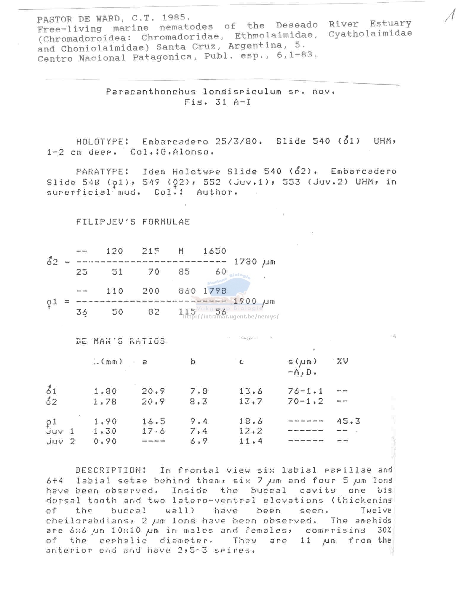 Nematode file-library of the Marine Biology Section (Ghent University, Belgium)