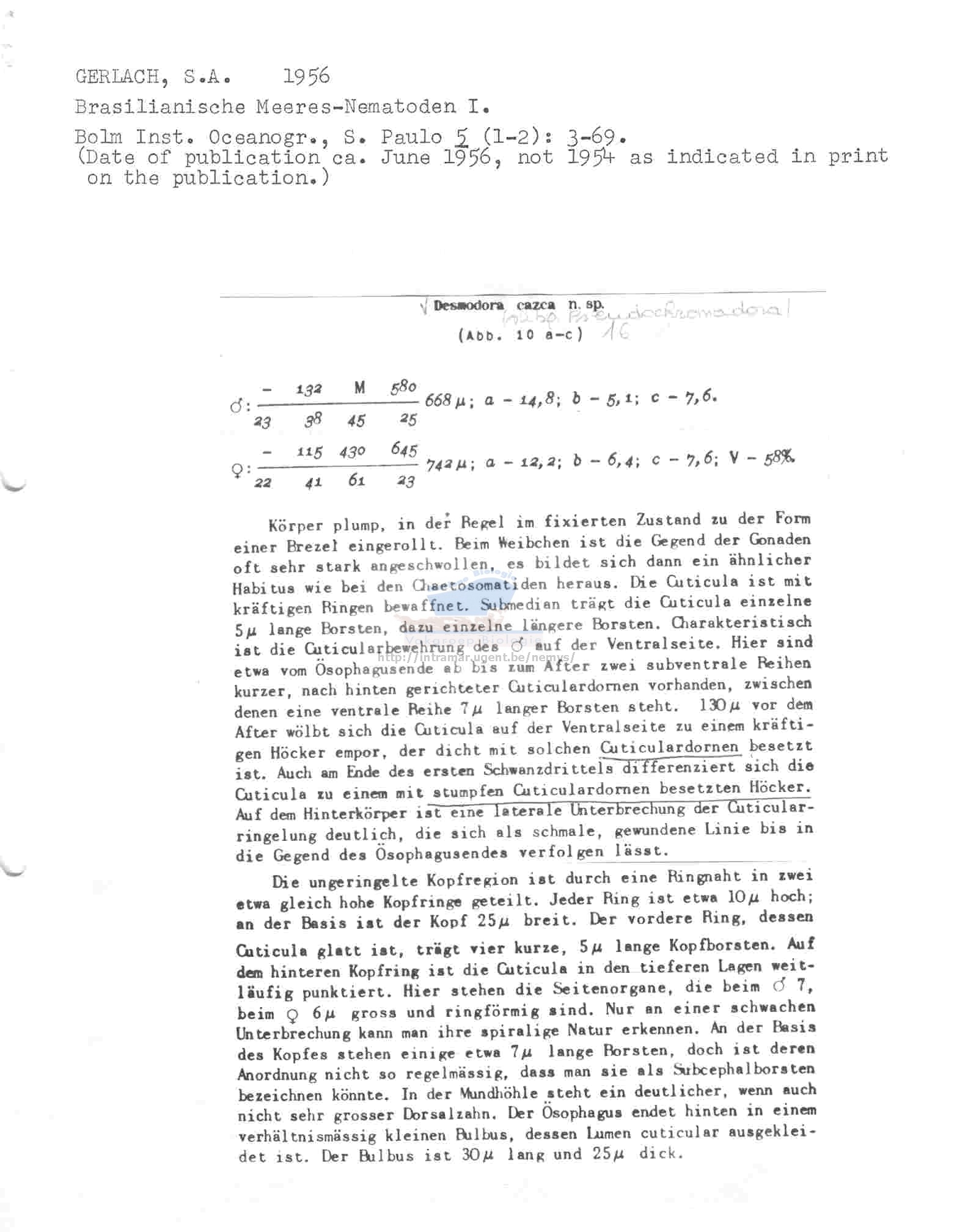 Nematode file-library of the Marine Biology Section (Ghent University, Belgium)