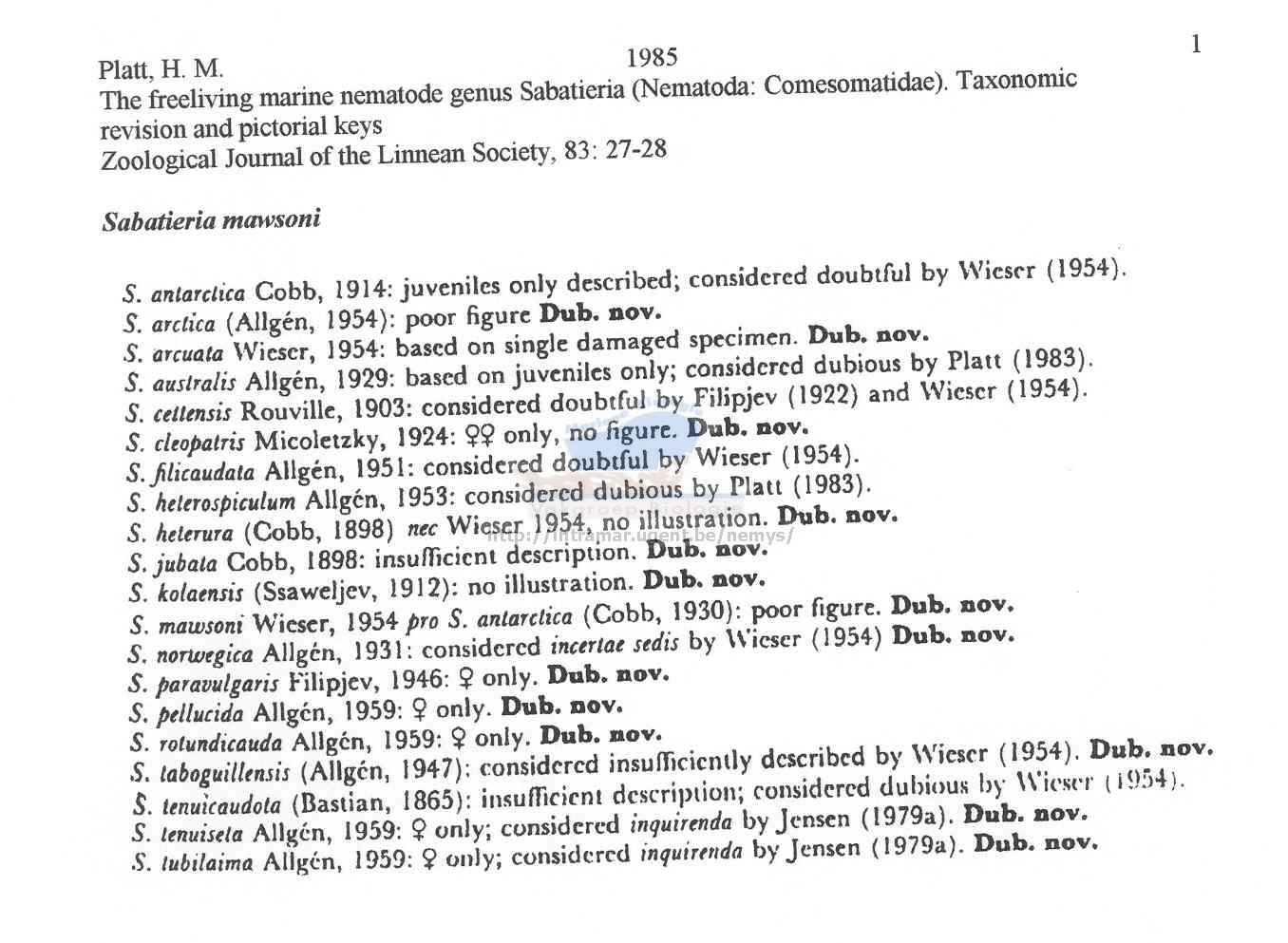 Nematode file-library of the Marine Biology Section (Ghent University, Belgium)