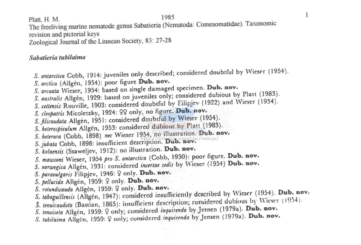 Nematode file-library of the Marine Biology Section (Ghent University, Belgium)
