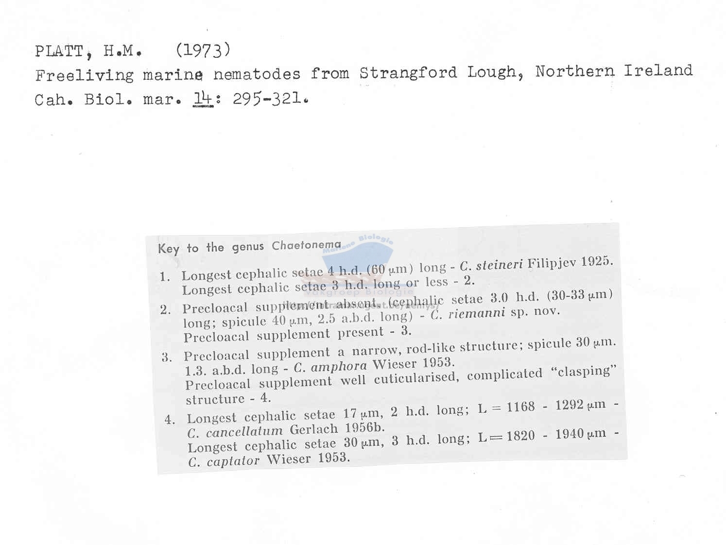 Nematode file-library of the Marine Biology Section (Ghent University, Belgium)