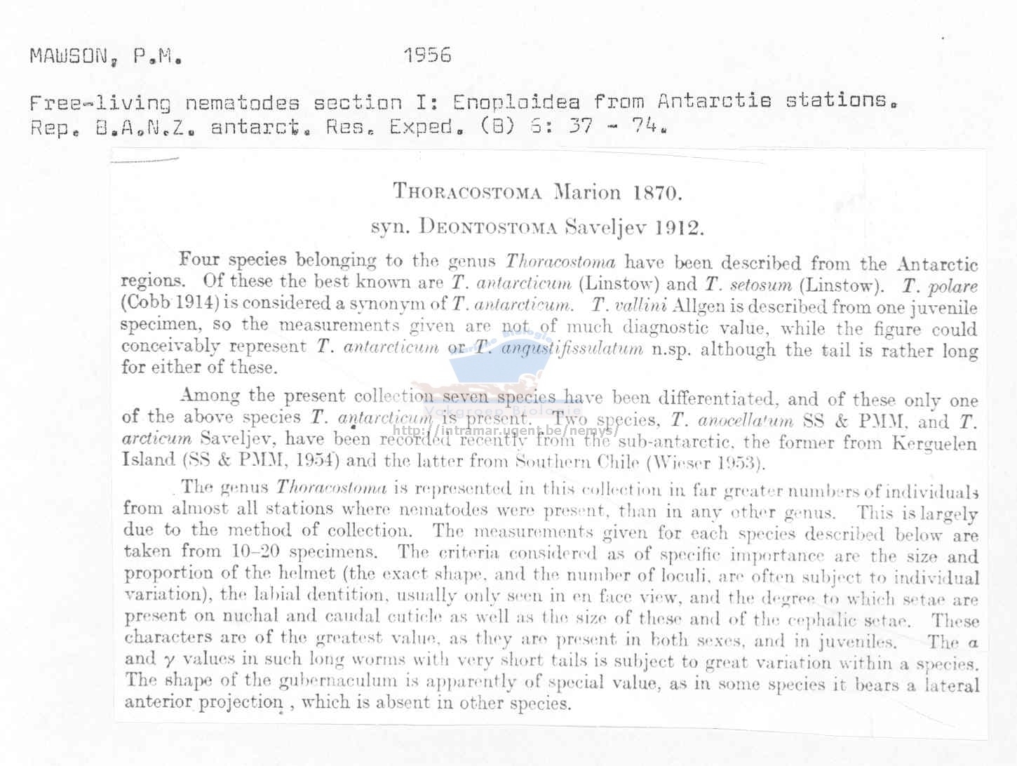 Nematode file-library of the Marine Biology Section (Ghent University, Belgium)