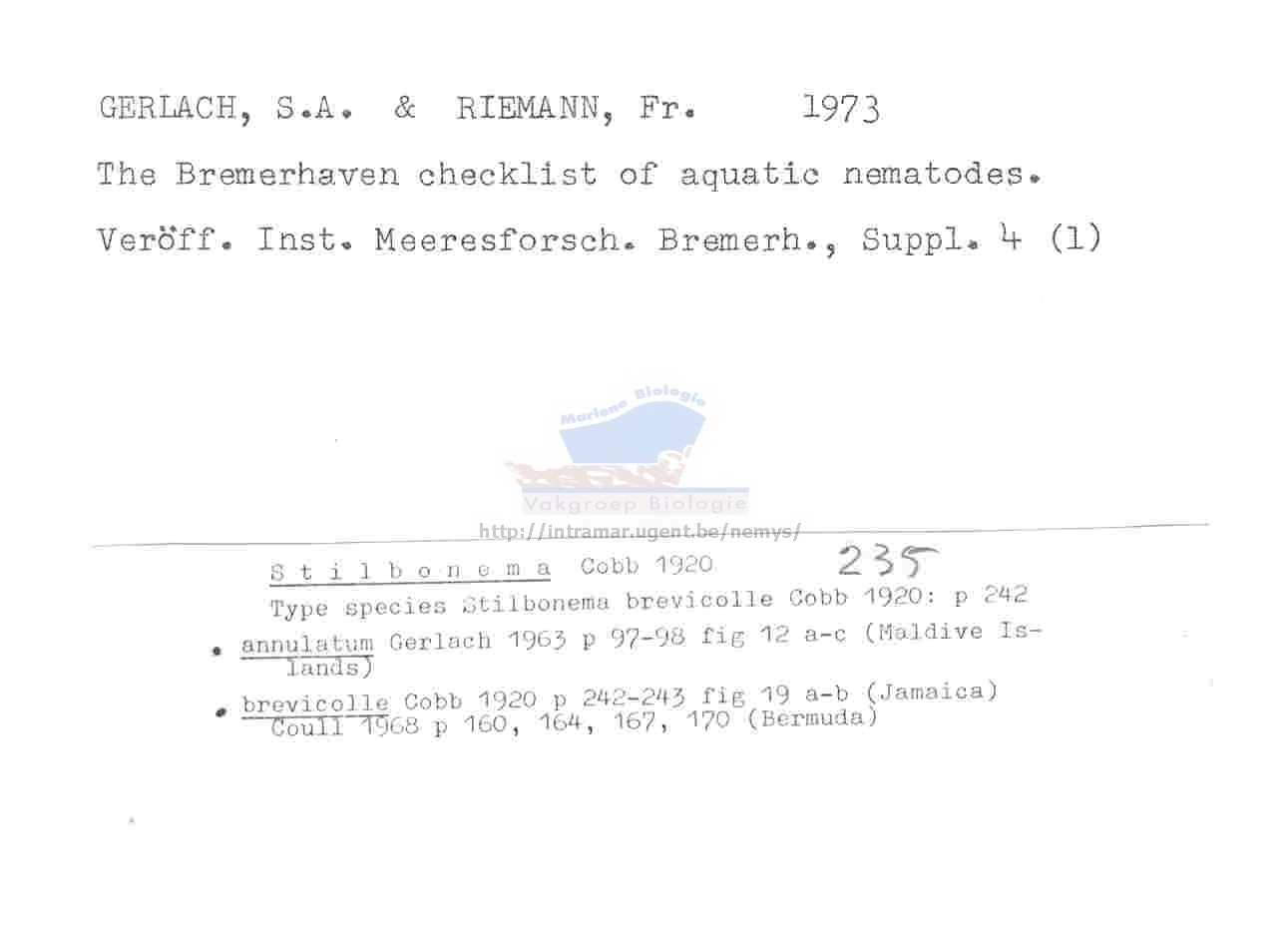 Nematode file-library of the Marine Biology Section (Ghent University, Belgium)