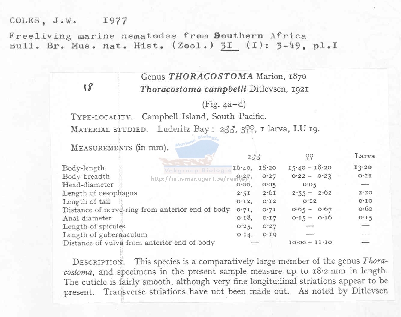 Nematode file-library of the Marine Biology Section (Ghent University, Belgium)