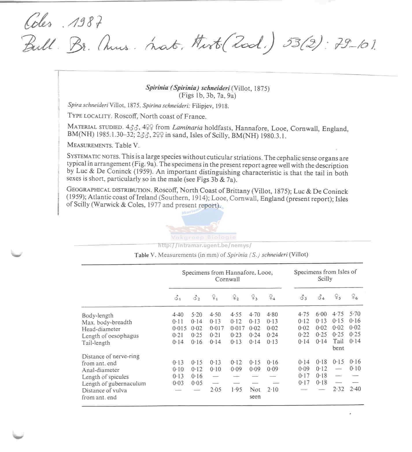Nematode file-library of the Marine Biology Section (Ghent University, Belgium)