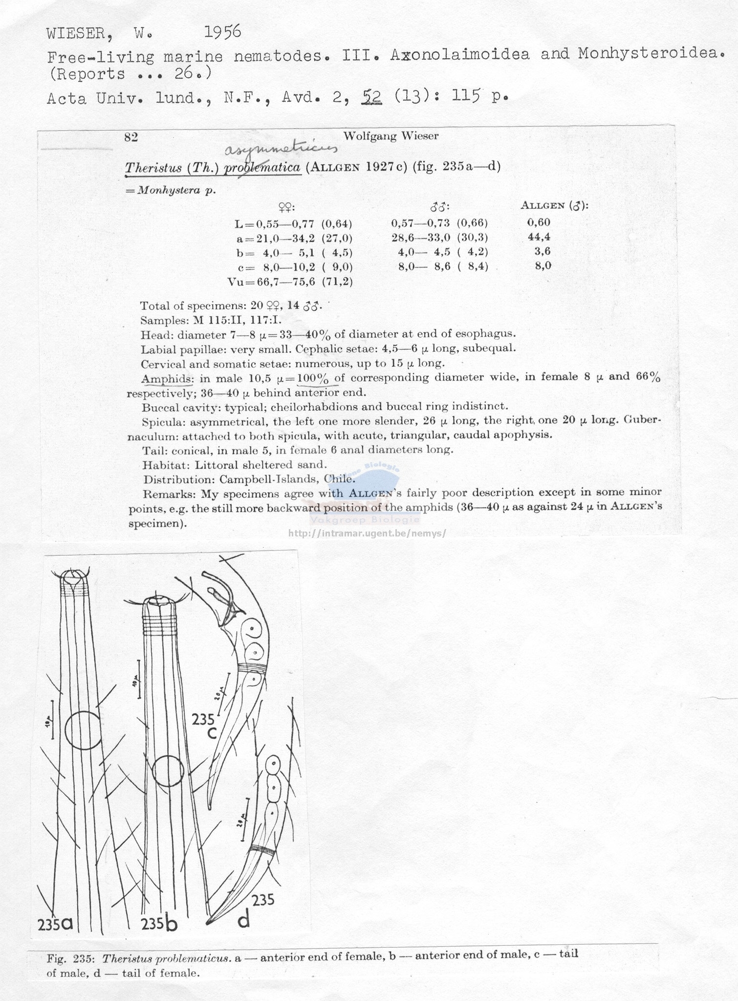 Nematode file-library of the Marine Biology Section (Ghent University, Belgium)