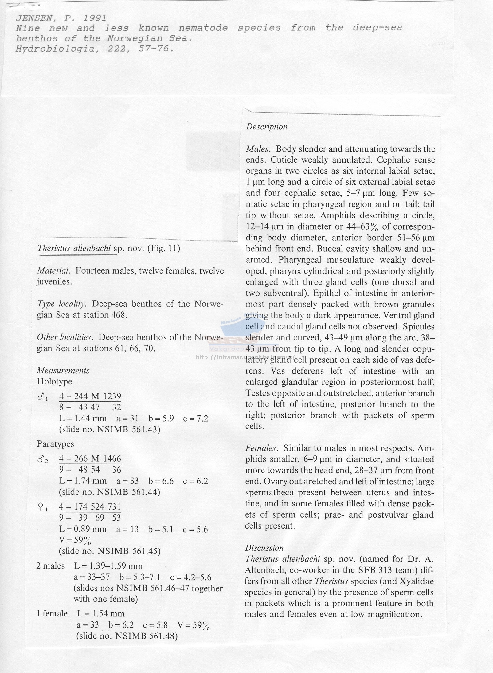 Nematode file-library of the Marine Biology Section (Ghent University, Belgium)