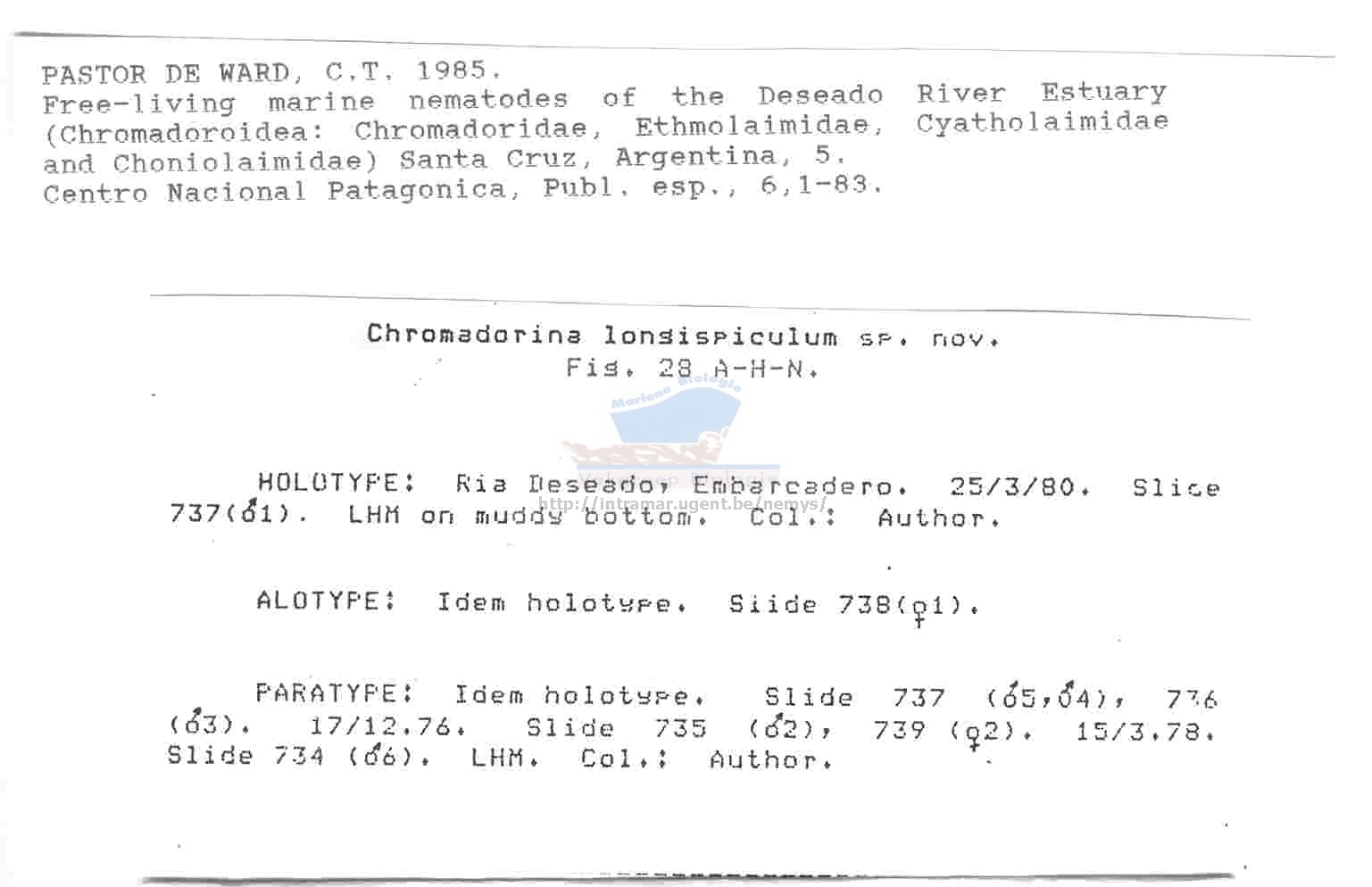 Nematode file-library of the Marine Biology Section (Ghent University, Belgium)