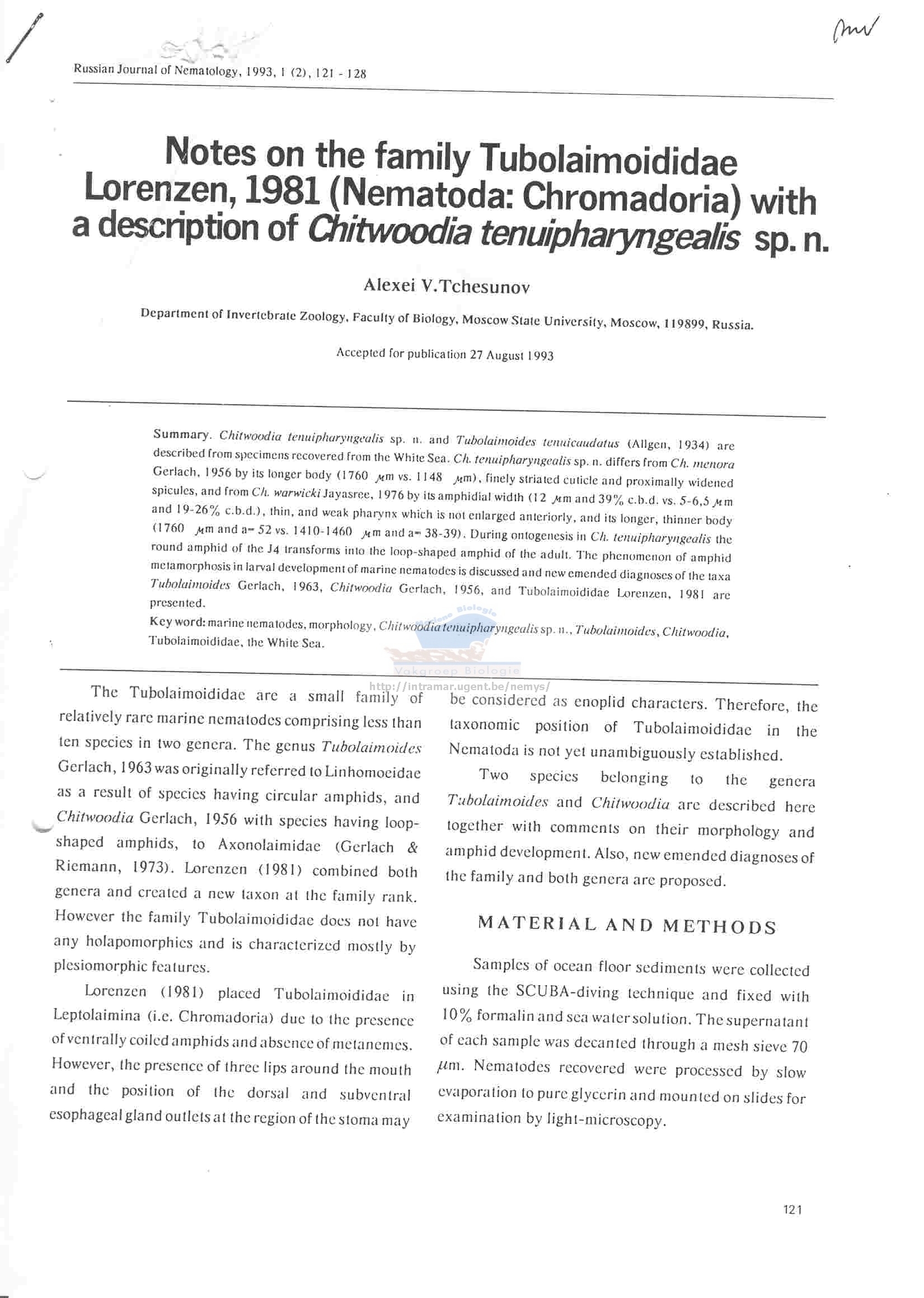 Nematode file-library of the Marine Biology Section (Ghent University, Belgium)