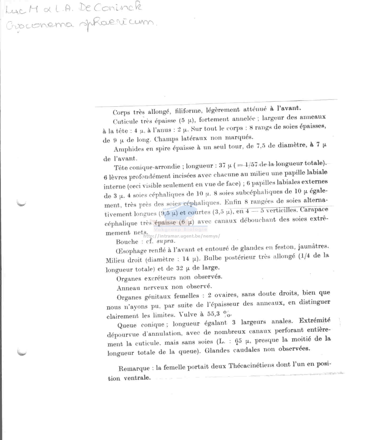 Nematode file-library of the Marine Biology Section (Ghent University, Belgium)