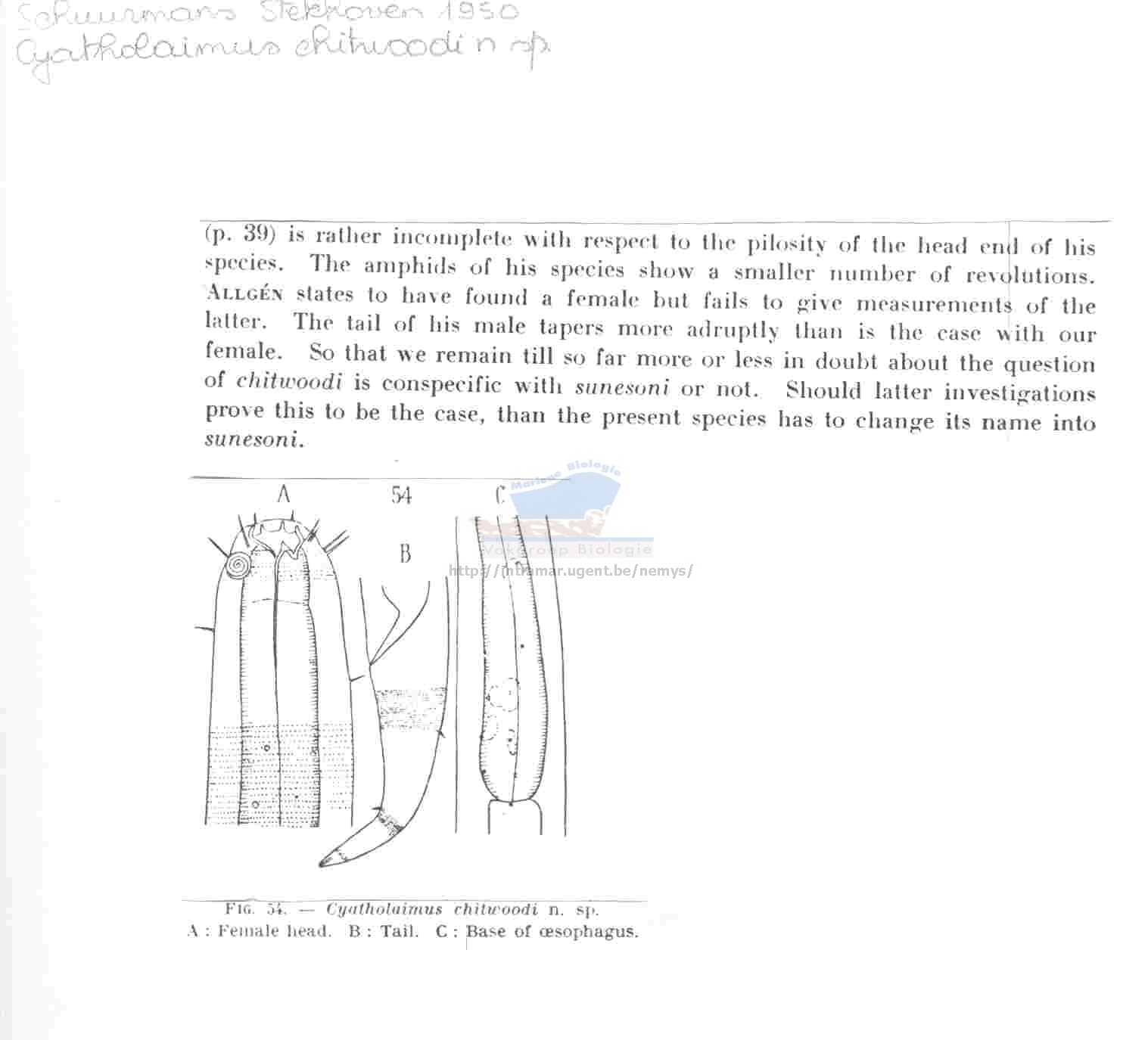 Nematode file-library of the Marine Biology Section (Ghent University, Belgium)